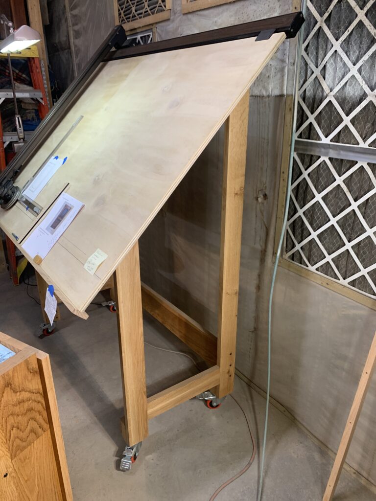 This winter I built a drafting board and the stand for that board from a new sheet of plywood and some salvaged white oak lumber from a failed personal project of setting up a three-season greenhouse with raised beds. I learned I am not a farmer, I am a woodworker!